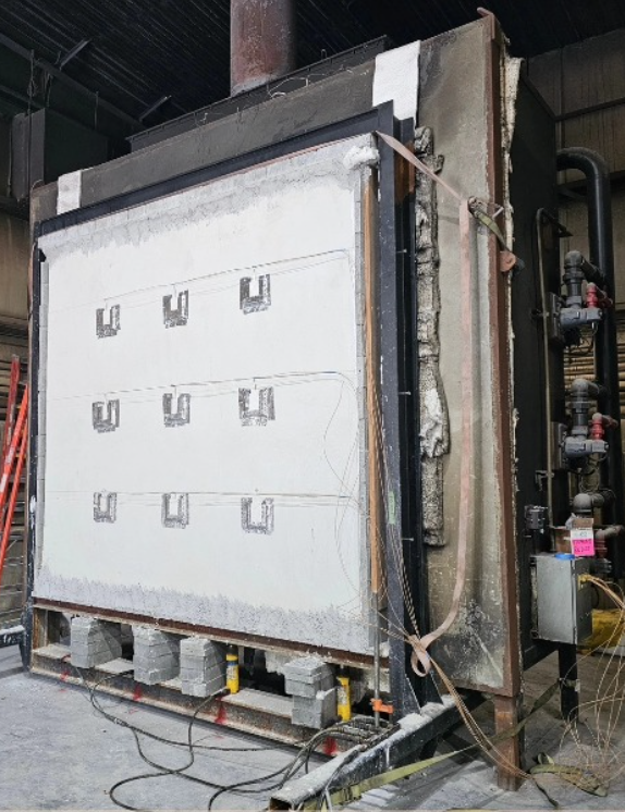 A spray-applied hempcrete wall was subjected to a blistering 1,700-degree Fahrenheit heat test as part of the ASTM E119 fire resistance testing for building materials at York, PA-based Intertek. The 12-inch wide full-scale wall sample was created by PA-based Americhanvre Cast Hemp with the Ereasy Spray Applied system.