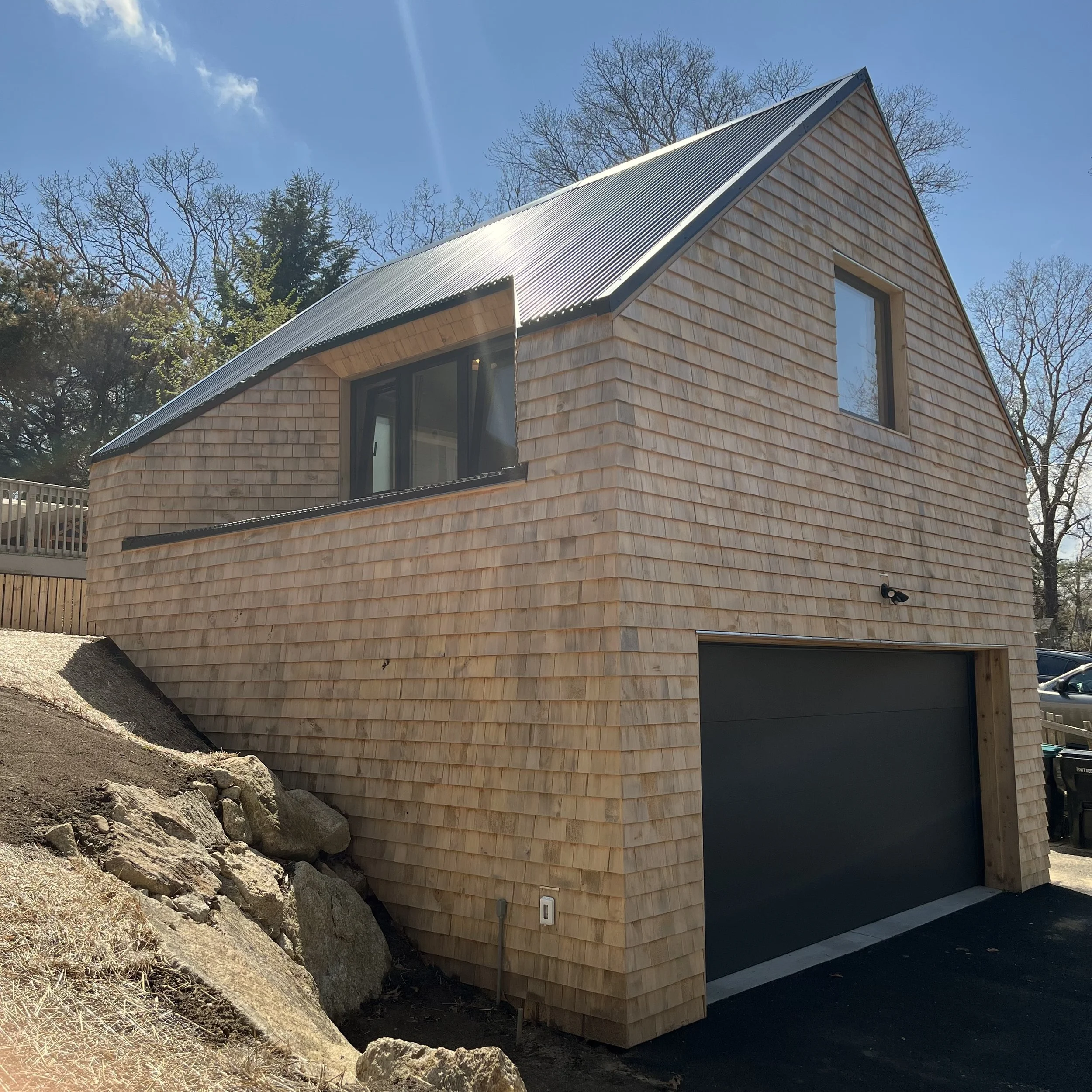 Garage and architect’s studio built in Plymouth, MA, designed and built by architect Joe Fisher. Photo courtesy of Joe Fisher