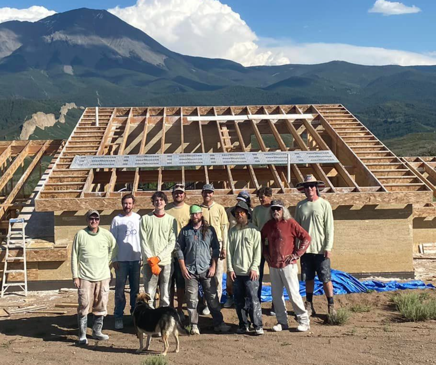 Members of the hemp crew that installed hempcrete walls at the La Veta build pose at the back of the new house. Photo by Jean Lotus