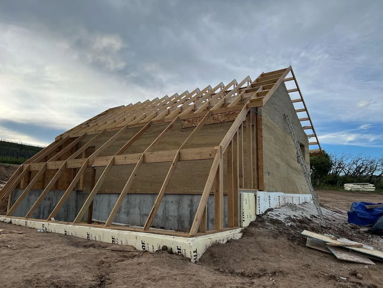 A hempcrete-insulated garage and greenhouse built this summer in LaVeda, CO by Hemp Building Company. Photo by Phelan Dalton