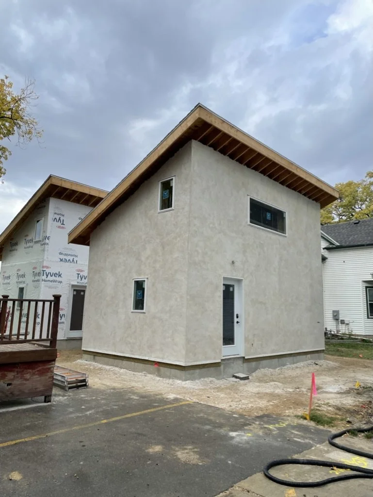 Twin houses built side-by-side on 10th Street in Fargo, ND, will compare the building and operational costs of hemp-lime insulation and “conventional” building, as well as the resilience and health environment in each type of building.