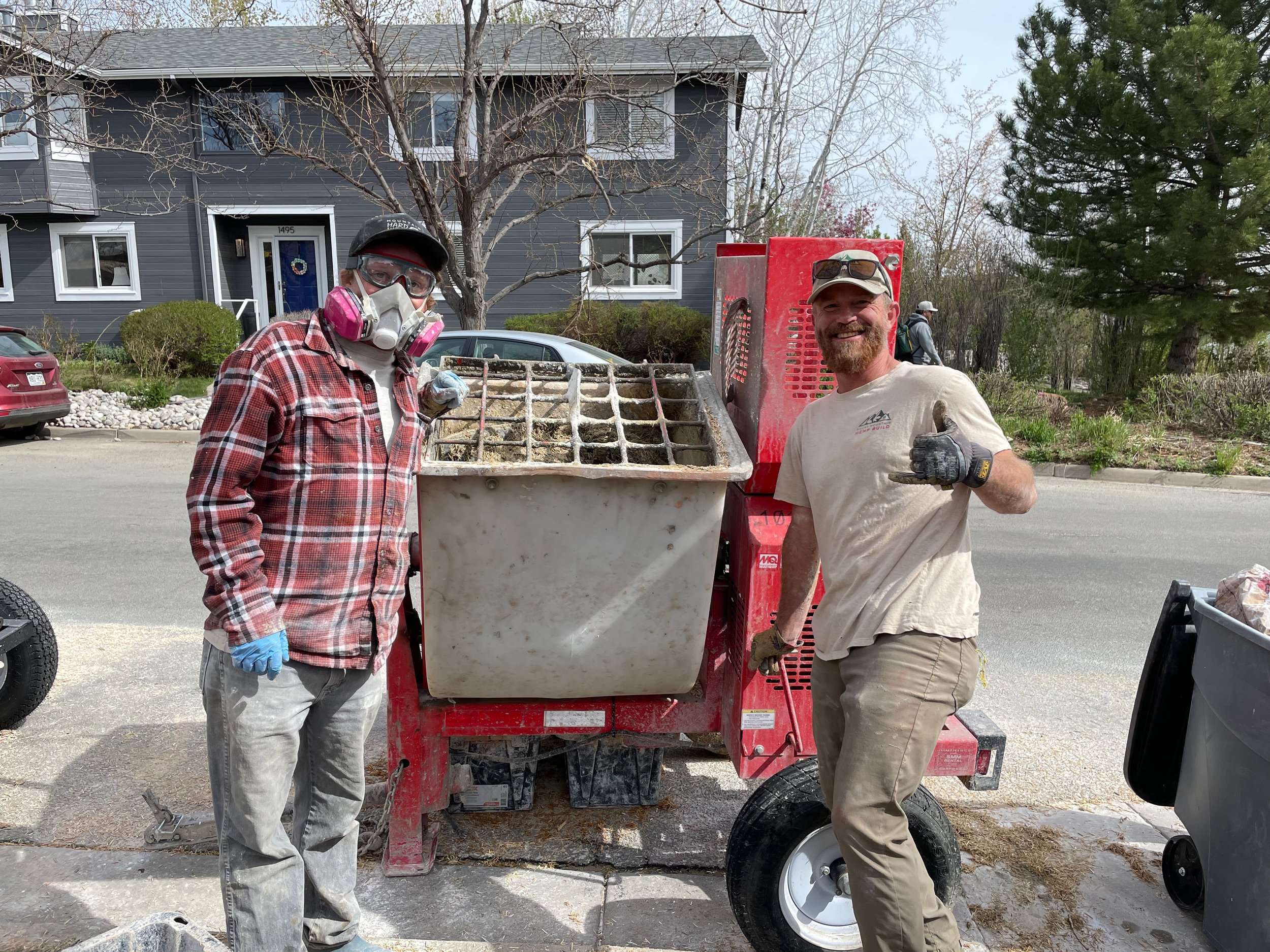 Colorado-grown hemp hurd was used in the project provided in super-sacks from the San Luis Valley, processed by Global Hemp Processing. Builders used 10 lb. bags of Type S hydraulic lime in a one-to-one mix with hemp hurd. Because the wall is not being used for insulation, builders also used a small portion of Portland cement in the mix.
