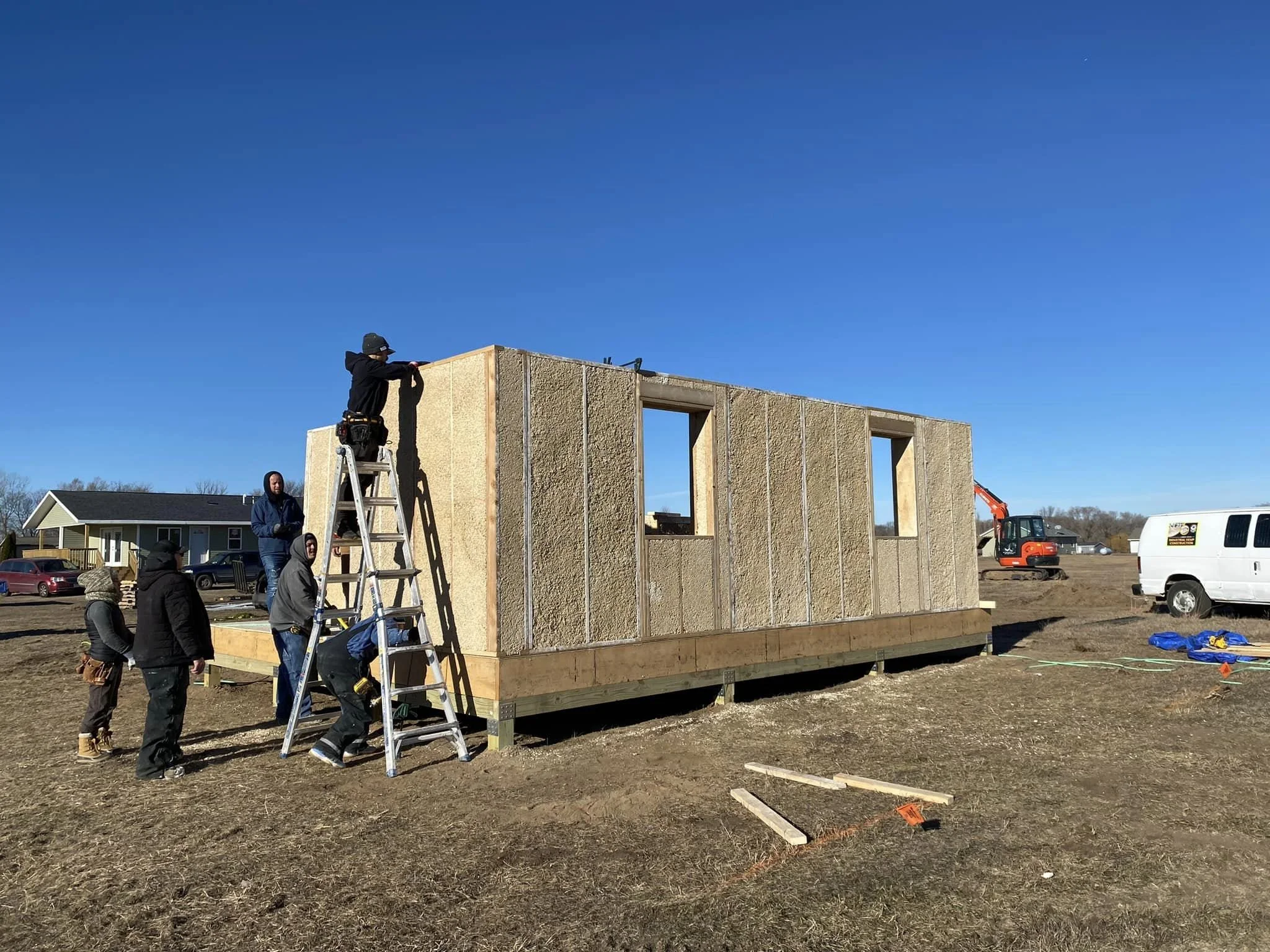 “In less than a day, all of the walls were completely up on that house. And it probably took us a day to a day and a half to do the foundation and the floor. It took us another day to set the roof rafters and sheet it,” Desjarlais said.