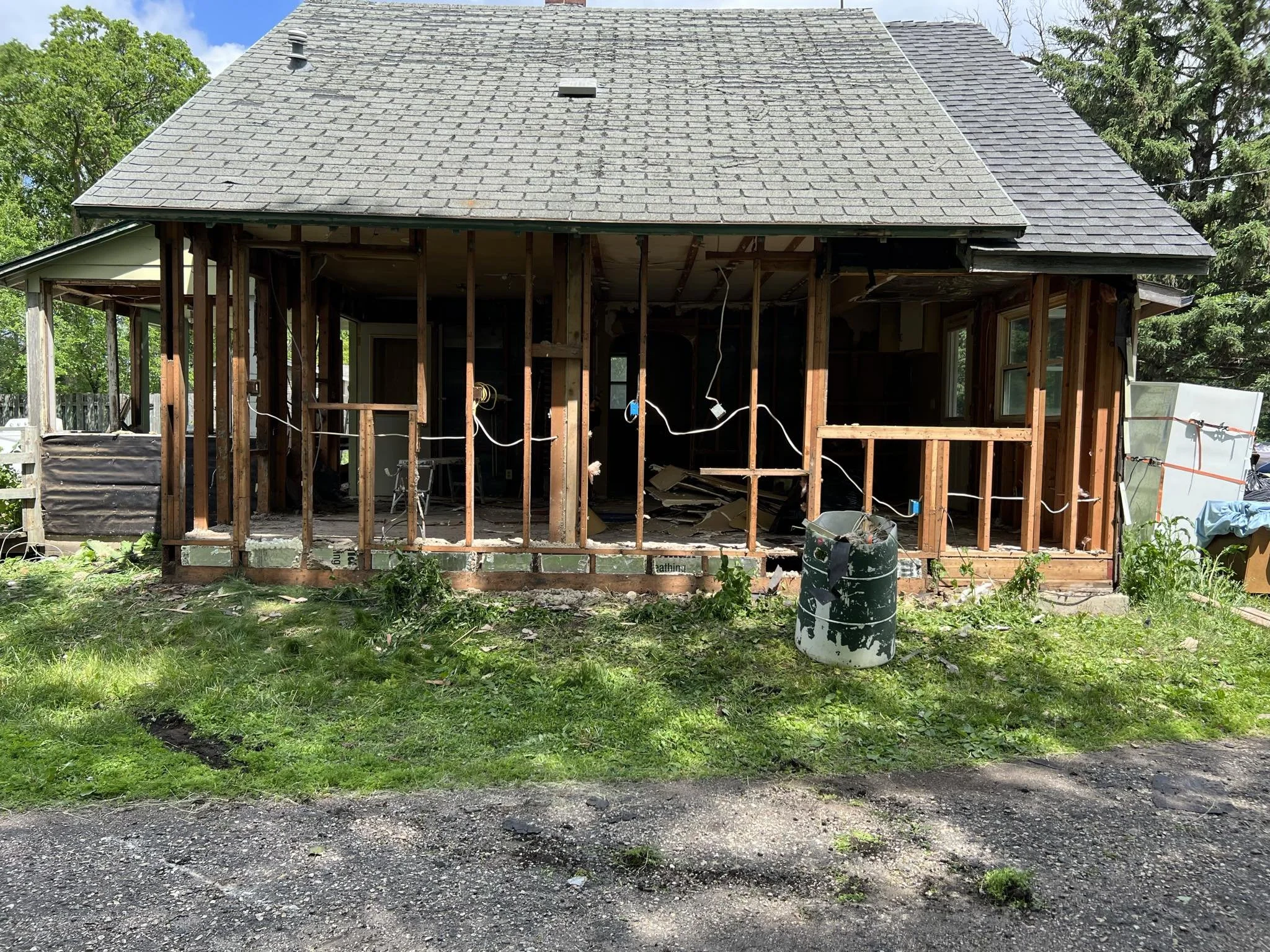 An abandoned home on the Lower Sioux reservation was stripped to the studs to be retrofitted with spray-in hempcrete. Photo courtesy of Danny Desjarlais