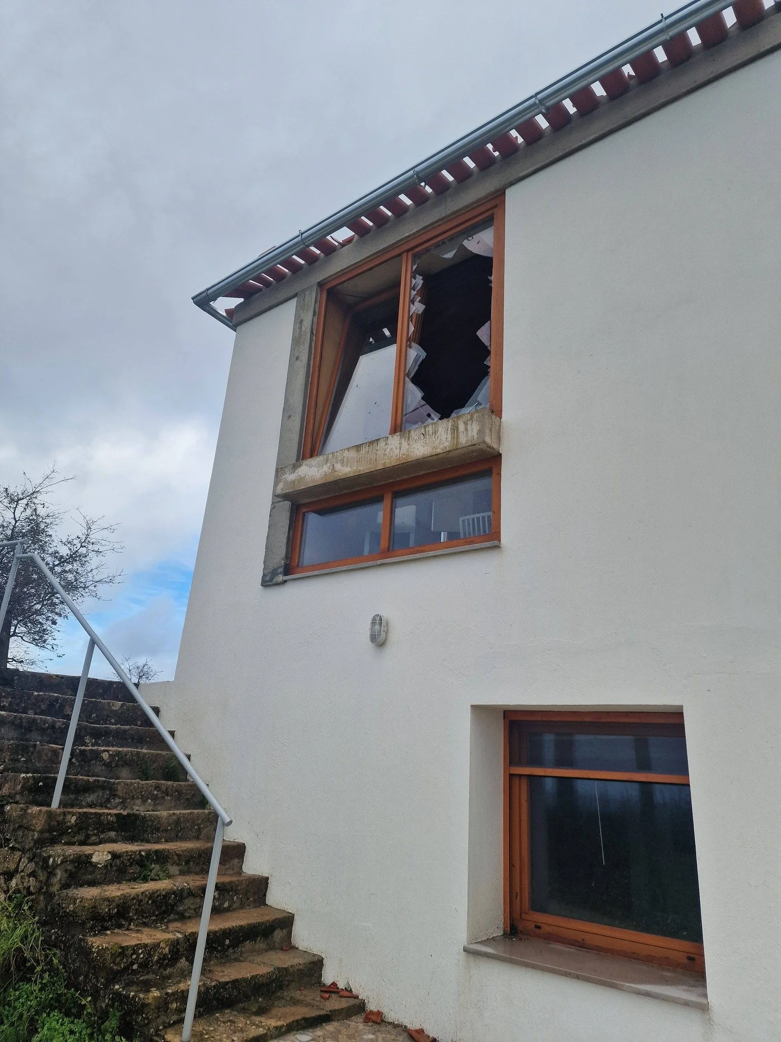 Windows were broken in storm damage at Quinta da Chumbaria. Photo courtesy of Sarah McGuiness
