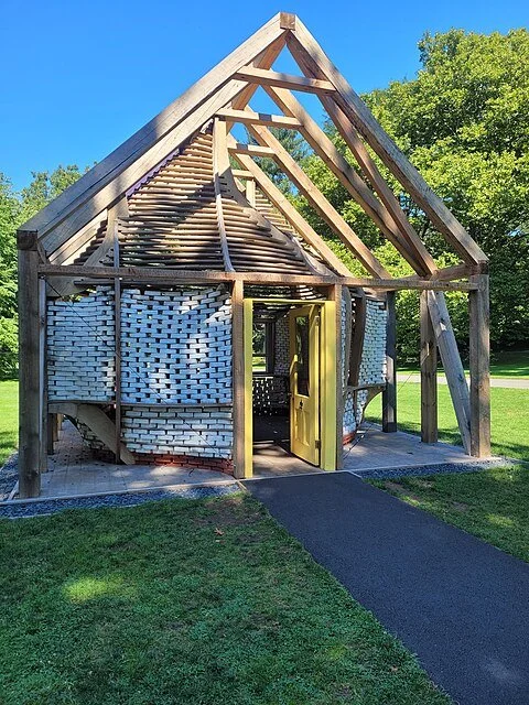 A sample structure built from mycelium bricks is displayed at the New York Botanic Garden. Bricks were created by Ecovative. Creative Commons license